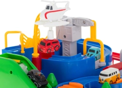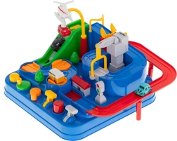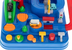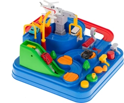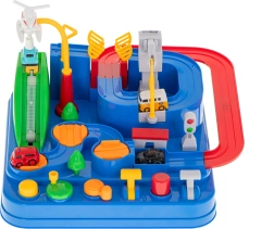 Ga op een spannende rit vol verrassingen. De interactieve baan met obstakels, ophaalbrug en tandwielen test de handigheid en het logisch denken van kinderen. De bediening is eenvoudig en leuk – met knoppen en draaielementen beweeg je de auto’s over het parcours en voltooi je de missies van de hulpdiensten.