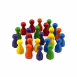 Set van houten figuren in zes opvallende kleuren, ideaal voor het verbeteren van het spel Mens-erger-je-niet!