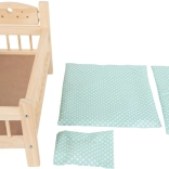 Geef je poppen een comfortabele slaap met dit aantrekkelijke houten bedje. Het heeft robuuste houten latten voor een stabiele constructie en is ideaal voor poppen tot een hoogte van 39 cm. Inclusief beddengoed met kleurrijke variaties die elke kleine verzorger zullen plezieren.