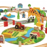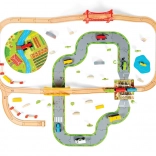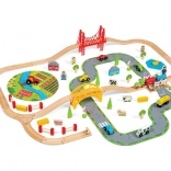 Deze houten treinbaan met landelijke weg is de perfecte combinatie van een treinbaan en autobaan, die de echte wereld van verkeer nabootst. Dankzij bruggen en overgangen worden uw kinderen meegenomen naar een wereld vol leuke avonturen. Het geheel is aangevuld met lokale accessoires zoals een boerderij, gebouwen en bomen, die de omgeving verfraaien.