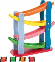 Houten racebaan voor kinderen is een kleurrijk speelgoed dat urenlang plezier biedt. Met behulp van de kleurrijke autootjes ontwikkelen kinderen hun motoriek en leren ze kleuren herkennen terwijl ze snel naar beneden racen over de stevige houten banen.
