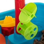 De zandbak is uitgerust met tal van accessoires, waaronder vormen, kanonnen en kleine boten, die kinderen eindeloze speelmogelijkheden bieden en zandconstructies kunnen maken.