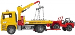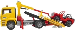 De Bruder takelwagen MAN is het ideale speelgoed voor kinderen die houden van simulatie en spelen met realistische automodellen. De wagen biedt een kantelcabine waarmee je in de motorruimte kunt kijken, en is uitgerust met een voorruit van duurzaam polycarbonaat. Achter de cabine bevindt zich een zwenkarm met kettingen voor eenvoudige bediening van de Jeep.