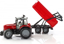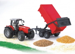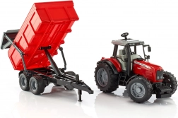 Beleef realistisch boerderijspel met de MASSEY FERGUSON 7480 tractor en kippende plateauwagen. Het model op schaal 1:16 valt op door de precieze afwerking, de functionele besturing die via een verlengd stuur door het cabinedak wordt bediend, en de te openen onderdelen waarmee je onder de motorkap en in de cabine kunt kijken.