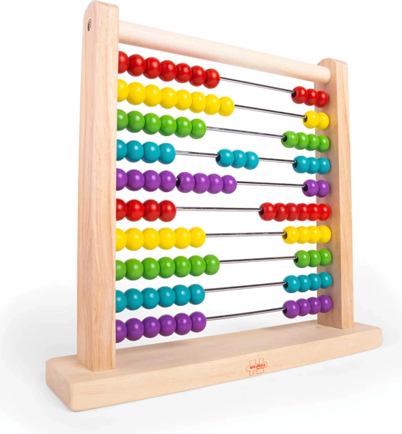 Dit telraam is ideaal voor kinderen vanaf 18 maanden, en helpt bij het leren van eenvoudige rekenkunde en de ontwikkeling van fijne motoriek.