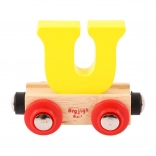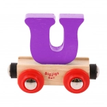 Breid je treinbaan uit met deze unieke wagon van Bigjigs Rail met de letter 'U'. Elke letter is verkrijgbaar in verschillende kleuren, waardoor kinderen tijdens het spelen hun eigen woorden, namen of titels kunnen maken. Dankzij de magnetische koppelingen is de wagon gemakkelijk te verwisselen en zonder problemen te koppelen met andere onderdelen.