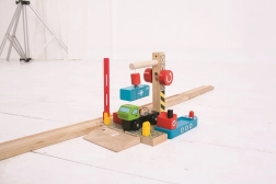 Het speelgoed is gemaakt van hoogwaardige, verantwoord verkregen materialen, voldoet aan de huidige Europese veiligheidsnormen en is een perfecte aanvulling op elke houten treinbaan. Kinderen oefenen oog-handcoördinatie, geduld en logisch denken terwijl ze genieten van realistisch laden en lossen.