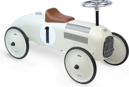 Dankzij de rubberbanden rijdt hij stil, zelfs op harde ondergronden, waardoor de loopauto geschikt is voor zowel binnen als de stoep. Het retrodesign komt tot zijn recht in elke kinderkamer en stimuleert de fantasie en het plezier in bewegen.