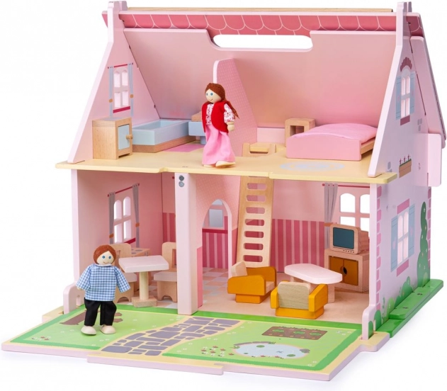 Dit hoogwaardige houten poppenhuis is ontworpen voor eindeloze uren fantasierijk spel. Dankzij de lift, het terras en de rijke meubeluitrusting creëren kinderen moeiteloos hun eigen verhalen en scènes. De ingebouwde handgreep maakt het eenvoudig om het huis te verplaatsen en het speelplezier overal mee naartoe te nemen.