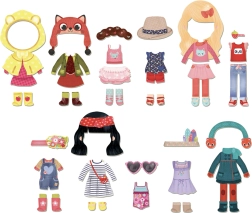 De set bevat een brede selectie jurken, jasjes, schoenen en accessoires, zodat kinderen eenvoudig hun eigen modieuze verhalen kunnen maken.