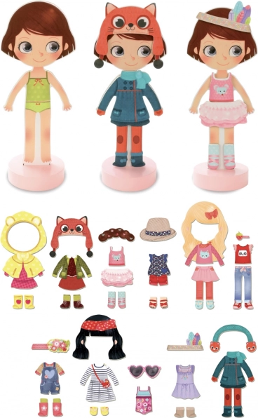 De magnetische aankleedpop Chloe is het ideale speelgoed voor kinderen die van mode en stijl houden. De stabiele houten standaard zorgt voor comfortabel aankleden en presenteren van outfits. Met de uitgebreide set magnetische items zijn ontelbare looks te combineren – van jurken en jasjes tot hoeden en schoenen.