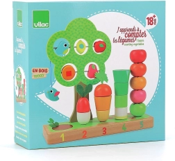 Ontdek de speelse houten set van Vilac die kinderen helpt leren tellen, kleuren en vormen te herkennen en tegelijk de fijne motoriek te trainen. Gekleurde stukjes groente en fruit worden op genummerde pinnen geplaatst en kralen bewegen over de boom – de veilige en duurzame constructie is ideaal voor kinderen vanaf 18 maanden.