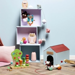 • Interactieve elementen: rijgen, stapelen, schuiven over de baan in de boom