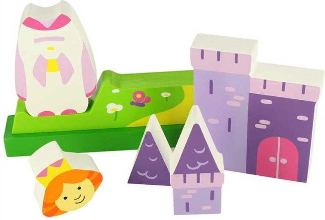 De set bevat 7 hoogwaardige houten stukjes in vrolijke kleuren, die samen een betoverend kasteel met prinsessenthema vormen. Het speelgoed bevordert concentratie en geduld en is dankzij het compacte formaat ook perfect voor onderweg.