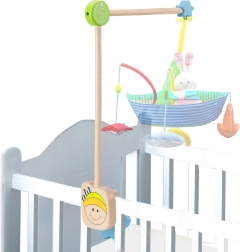 De stevige houten constructie minimaliseert trillingen en schommelen, zodat de mobiel veilig hangt op de ideale hoogte boven de baby.