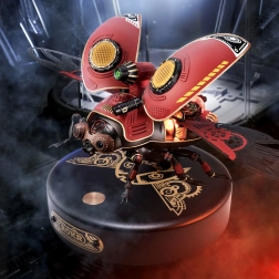 Deze originele mechanische kever is klaar voor een verkenningsvlucht – je hoeft hem alleen maar te bouwen! Tijdens het bouwen test je je vindingrijkheid, geduld en fijne motoriek. Na voltooiing kun je genieten van het vleugelgeklap en de indrukwekkende LED-verlichting, die het model een dramatische sfeer geeft en hem helpt “gevaar te ontwijken”.