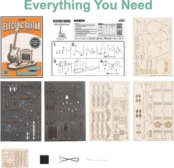 De set bevat 140 onderdelen met een lage moeilijkheidsgraad, dus ook zeer geschikt voor beginners en oudere kinderen. Dankzij de overzichtelijke handleiding bouw je de gitaar in ongeveer 1,5 uur in elkaar. Het resultaat is een realistisch model van een elektrische gitaar met versterker, een perfect cadeau voor muziekliefhebbers.