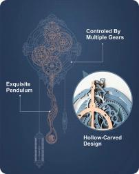 Geniet van het rustgevende tikken en de vloeiende beweging van de slinger. Het open ontwerp met tandwielen benadrukt de mechanische schoonheid van de klok en versterkt de vintage stijl van het interieur.