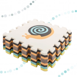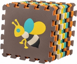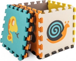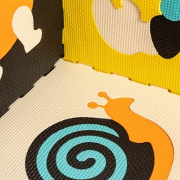 Deze grote schuimrubberen mat bestaat uit 9 delen van 30 × 30 × 1 cm die gemakkelijk in elkaar passen. Contrasterende kleuren en schattige dierenmotieven spreken kinderen aan en prikkelen zicht en tast. De uitneembare middenstukken werken als een eenvoudige sorteerder – kinderen leren vormen herkennen en op de juiste plek plaatsen.