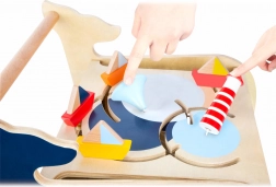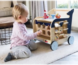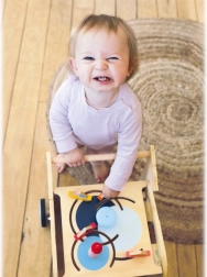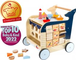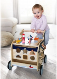 Ga op avontuur met de houten loopwagen in de vorm van een walvis. Deze loopwagen helpt niet alleen kinderen met hun eerste stapjes maar biedt ook verschillende interactieve spelletjes die de motoriek ondersteunen.