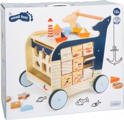 • Onderwaterwereld: De loopwagen is geïnspireerd op de wereld van de zeevaart en bevat activiteiten zoals vormpuzzels, draaiende afbeeldingen en een tekentafel.