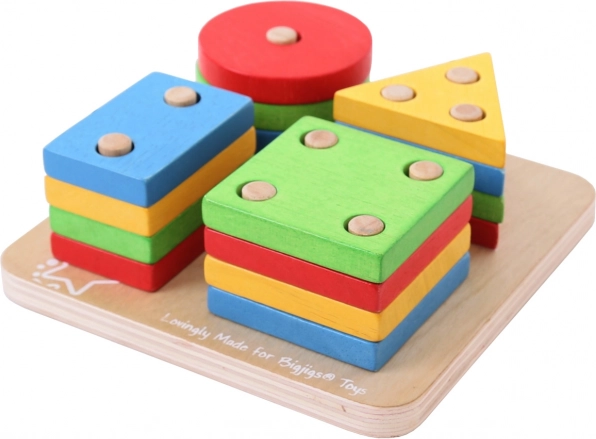 Bigjigs Baby houten sorteer- en stapelset met kleurrijke vormen op pinnen