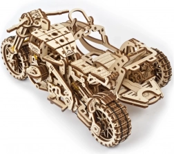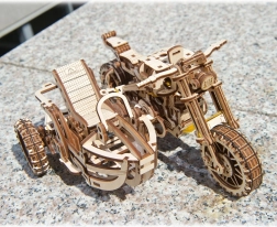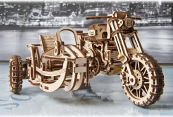 Na voltooiing krijg je een indrukwekkend model van een motor met zijspan dat een plank siert en elke techniekliefhebber zal verblijden.