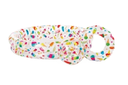 De set bevat een opblaasbaar zwembad, een zwemring en een strandbal – kinderen kunnen spetteren, de bal vangen en vertrouwen in het water opbouwen.