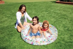 Dit ronde kinderzwembad van 122 × 25 cm is een uitstekende keuze voor zomerse pret in de tuin of op het terras. Dankzij het ondiepe water (aanbevolen hoogte tot 14 cm) biedt het veilige en comfortabele verfrissing voor de allerkleinsten. De set bevat ook een bijpassende strandbal en kinderzwemring (beide ca. 51 cm), zodat het plezier vanaf de eerste vulling verzekerd is.