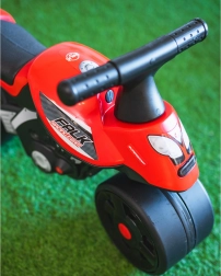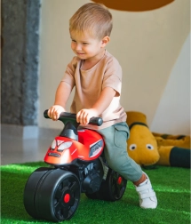 De rode FALK Racing loopmotor is een uitstekende keuze voor de eerste zelfstandige ritjes. Dankzij de brede wielen is hij zeer stabiel op diverse ondergronden en het draaibare voorwiel maakt manoeuvreren eenvoudig, ook in kleinere ruimtes. De hoogwaardige afwerking van zeer duurzaam kunststof is bestand tegen dagelijks spelen, zowel binnen als buiten.