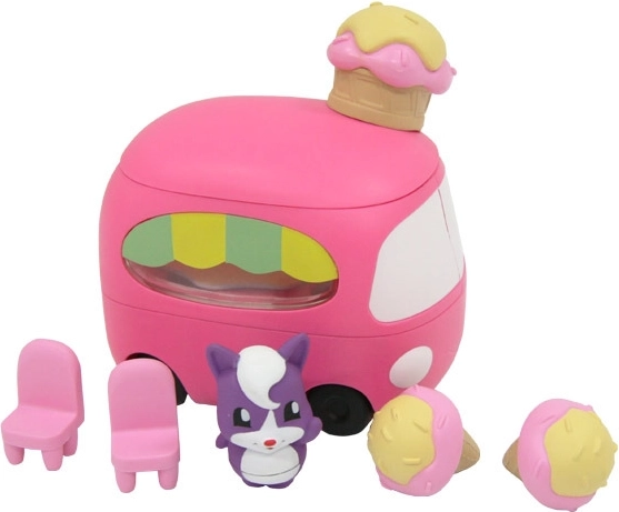 - Printer, verborgen rollend stempeltje, 2 ijsjesstempels, notitieboekje, accessoires, speelset – autootje, 2 stoeltjes, handleiding