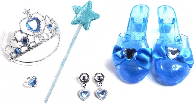 - Complete uitrusting: kroon, schoentjes, toverstaf, clipoorbellen en een ring.