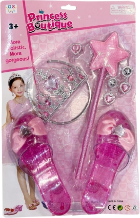 Verander elk spel in een sprookje met deze betoverende prinsessenset! Bevat een kroon, hakschoentjes, toverstaf, oorbellen en een ring in prachtige kleuren – roze, paars en blauw. Ideaal voor rollenspel, het stimuleren van de fantasie en creatief speelplezier voor kleine modellen.