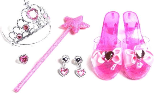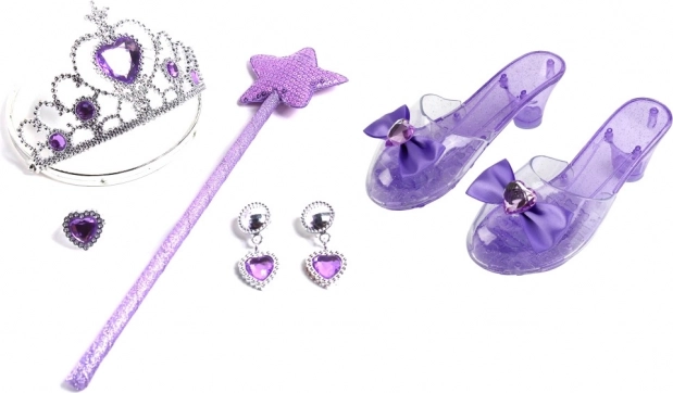 Kies uit roze, paars of blauw – elke set bevat een kroon, toverstaf, schoentjes, oorbellen en een ring voor urenlang speelplezier.
