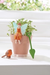 De charmante fee met blauwe vleugels en haar vriendje, het vogeltje Robin, geven het bloempotje een sprookjesachtige uitstraling en laten elke kinderkamer stralen.