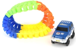 Deze variabele racebaan is een ideale keuze voor jonge coureurs. Dankzij het eenvoudige kliksysteem bouwen kinderen makkelijk hun eigen baan en genieten ze van snelle ritten met het meegeleverde autootje. De baan is vrij te vormen, wat creativiteit en fantasie stimuleert.