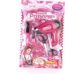 De set bevat veilige kunststof tools zoals een föhn, krultang, kam, speldjes en decoratieve accessoires. Dankzij het lichte ontwerp zijn ze eenvoudig te hanteren en perfect voor de ontwikkeling van de fijne motoriek.