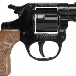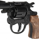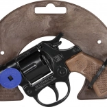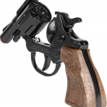 Politie-revolver – van metaal, zwart voor knalkapsels – acht schoten. Afmeting van de revolver 13×8,5 cm. Gemaakt in Spanje.