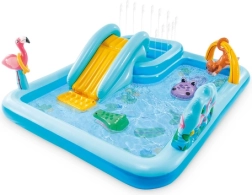 Tover je tuin om tot een zomers paradijs! Het INTEX water speelcentrum voor kinderen biedt een zachte glijbaan met schokdempende mat, een ondiepe peuterzone en een leuke fontein. Duurzaam PVC, eenvoudig onderhoud en een veilige diepte vanaf 11 cm garanderen uren zorgeloos speelplezier voor kinderen vanaf 2 jaar.