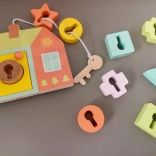 Dit prachtige speelgoed van Classic World brengt traditionele houten elementen in de vorm van blokken die kinderen kunnen rijgen aan een koord. Op deze manier ontwikkelen ze hun behendigheid, precisie van bewegingen en concentratie terwijl ze geometrische vormen leren kennen. Daarnaast biedt het prachtige entertainment en stimulatie van de aandacht van kinderen vanaf jonge leeftijd. Het is een geweldige manier om kinderen verantwoordelijk te maken en te werken met sleutels en deuren vanaf jonge leeftijd.