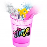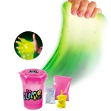 Maak je eigen slijm. Giet het poeder in het bekertje, voeg glitters en een figuurtje toe. Vul water tot aan het streepje, sluit het bekertje en schud het mengsel goed. Open vervolgens het bekertje en wacht vijf minuten. Het slijm is klaar. Combineer kleuren, voeg glitters toe en geniet van echte slijmpret. Licht op in het donker. Voor kinderen vanaf 6 jaar.