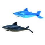 Het speeltje is verkrijgbaar in twee uitvoeringen: blauw en zwart. Beide haaien hebben bewegende staarten voor leuk spel in het water.