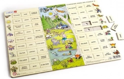 De Larsen-puzzel Engels 'Aan de bosrand' is ideaal voor kinderen die complexere Engelse zinnen willen leren vormen. Dankzij de afbeeldingen langs de rand, waarbij je stukjes toewijst en zinnen vormt, raken kinderen spelenderwijs betrokken bij het leren. Gevorderde kinderen kunnen zo hun eigen ideeën uitproberen en hun Engelse woordenschat verbeteren.