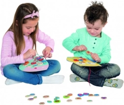 Populair speelgoed voor de ontwikkeling van fijne motoriek, fantasie en geduld van kinderen met motieven van een uil en vis. De set bevat 35 houten onderdelen en 4 veters voor eindeloos speelplezier.