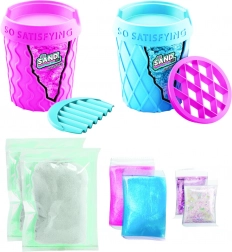 2 potjes, 2 zanden, 2 magische gels, 2 zakjes met accessoires, 2 uitsteekvormpjes