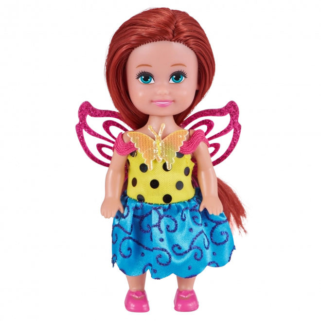 Voorzien van kleurrijke en glinsterende vleugels die van de pop een echte fee maken.
