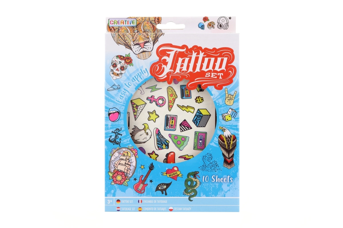 Ontdek je creatieve kant met deze tatoeageset, die 10 vellen met spannende tatoeages bevat voor meisjes en jongens. Geniet van eenvoudige applicatie en onvergetelijk plezier voor kinderen.