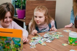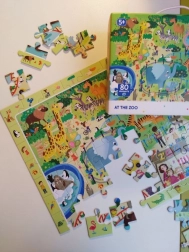 Deze kleurrijke dierentuinpuzzel biedt kinderen niet alleen plezier tijdens het leggen, maar ook een extra activiteit: na het voltooien van het plaatje kunnen ze het spel “Zoek en vind” spelen en de locatie van de afzonderlijke dieren ontdekken. Ideaal voor het ontwikkelen van aandacht, oog-handcoördinatie en woordenschat.