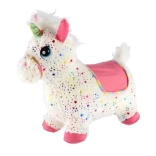 Schattig pluchen springdier in de vorm van een eenhoorn voor de allerkleinsten vanaf 12 maanden. Dankzij de ergonomische vorm, zadelhoogte 23 cm en zachte afneembare hoes is springen veilig en comfortabel. Bij het indrukken van de knop maakt de eenhoorn grappige geluiden, en pomp en batterijen zijn inbegrepen voor direct speelplezier.