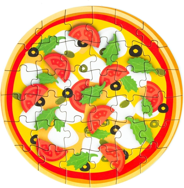 Ronde puzzel met het motief van een favoriete pizza, ideaal voor liefhebbers van deze lekkernij. Het leggen van de puzzel vermaakt het hele gezin.